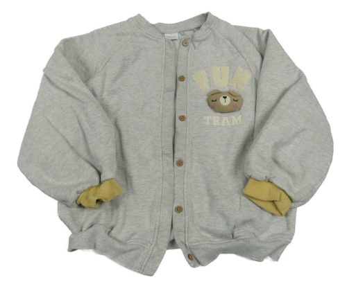 Sivo-béžová melírovaná prepínaci mikina s 3D medvedíkom a nápismi Next