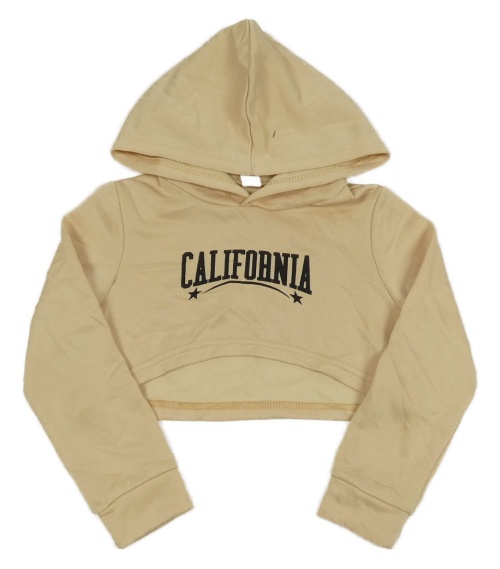 Béžová crop mikina s nápisom a kapucňou SHEIN