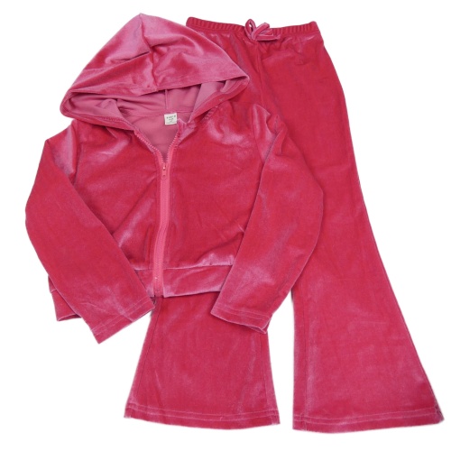 2set - Fuchsiová zamatová prepínaci crop mikina s kapucí + flare tepláky Shein