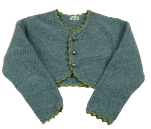 Modrošedé prepínaci svetrové bolerko so zeleným lemem
