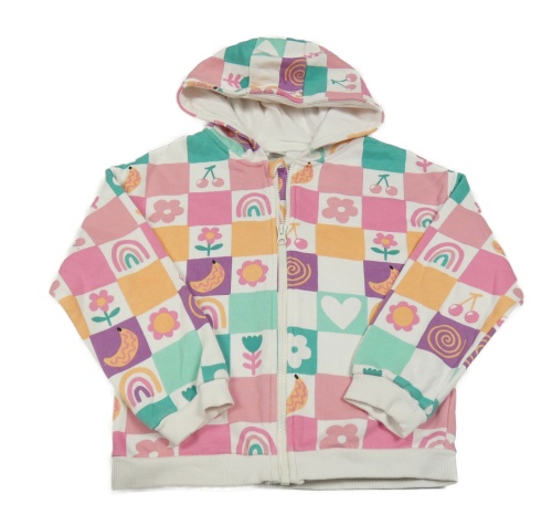 Bielo-farebná kockovaná prepínaci mikina s obrázkami a kapucňou Tu