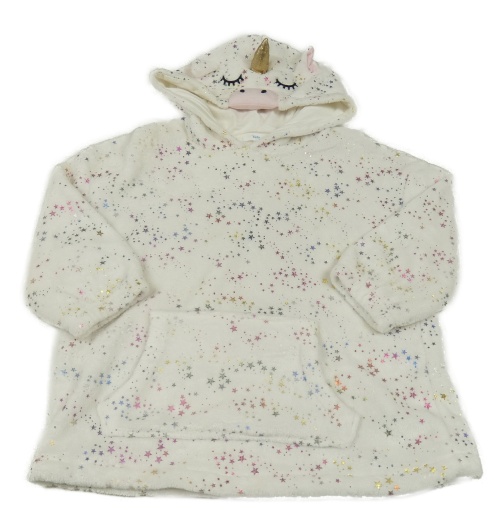 Biela chlpatá oversize mikina s trblietavými hviezdami a kapucňou