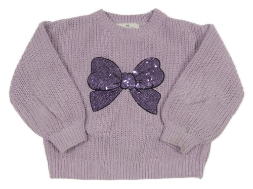 Svetlofialový rebrovaný žinylkový oversize sveter s mašlí flitre H&M