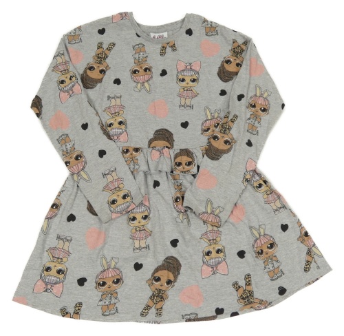 Sivé melírované šaty s L.O.L. Surprise a srdiečkami Matalan