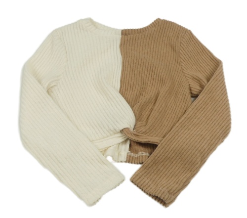 Hnedo-smotanová rebrovaná úpletová crop mikina s uzlom Shein