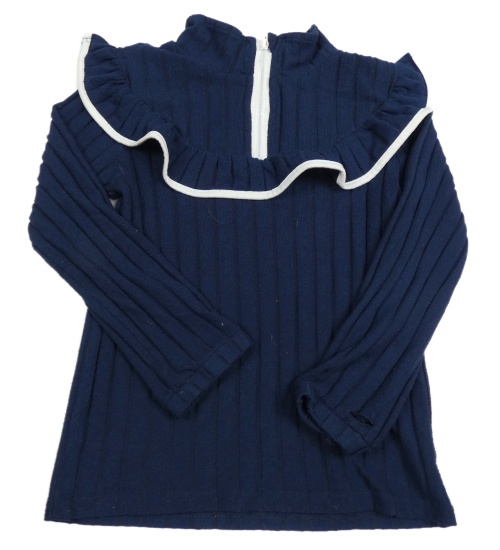Tmavomodrá rebrovaná úpletová tunika s volánikom SHEIN