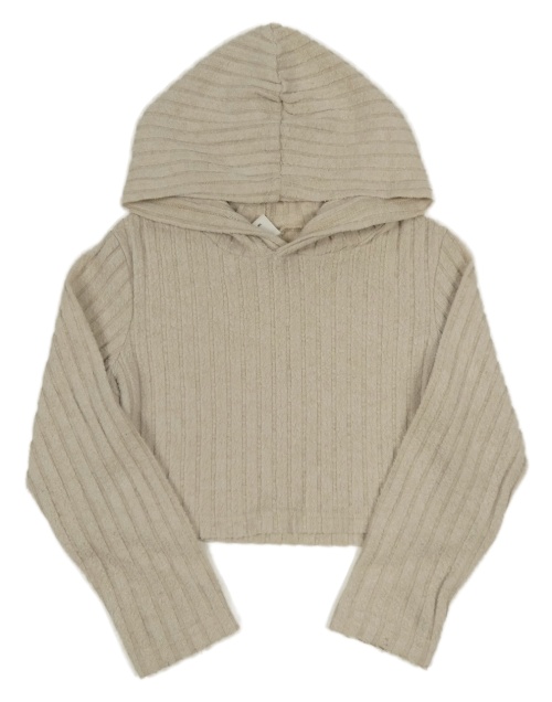 Smotanová rebrovaná úpletová crop mikina s kapucňou shein