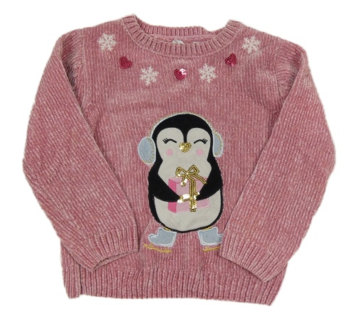 Staroružový žinylkový sveter s tučňáčkem s flitrami a srdiečkami a vločkami PRIMARK