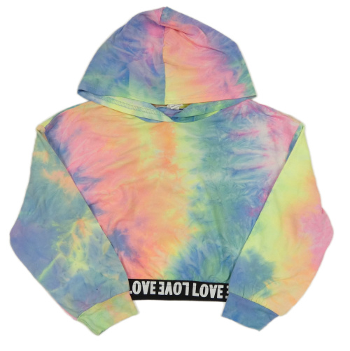 Barevno-čierna batikovaná slabá crop mikina s nápismi a kapucňou SHEIN