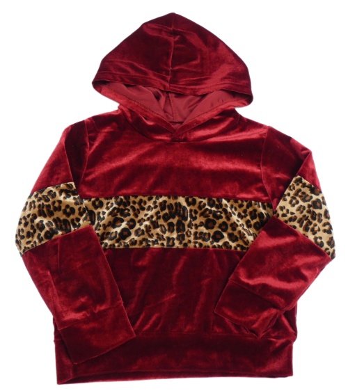 Červeno-tygrovaná zamatová mikina s kapucňou