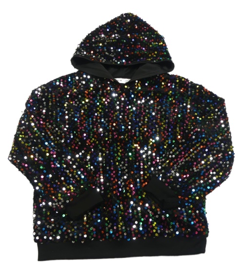 Čierna sametovo/flitrová mikina s kapucňou Shein