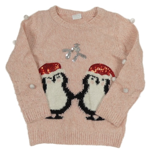 Ružový melírovaný sveter s tučňáky a bambulemi F&F