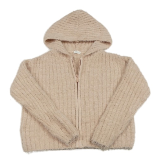 Světlepudrový rebrovaný chlpatý prepínaci oversize crop sveter s kapucňou Next
