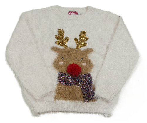 Biely chlpatý sveter so sobom a 3D brmbolcom F&F