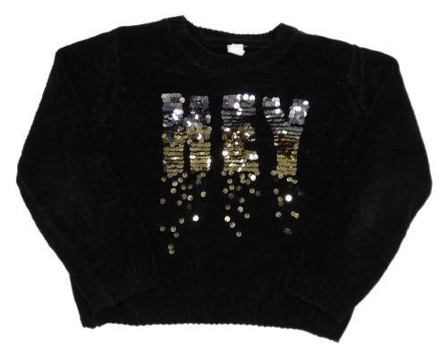 Čierny žinylkový sveter s nápisem z flitrů TU