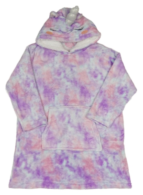 Farebná vzorovaná chlpatá oversize mikina s kapucí - jednorožec