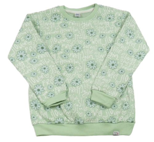 Svetlozelená tepláková mikina s nápismi a kvetmi