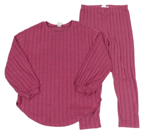 2set - Fuchsiová rebrovaná úpletová mikina + úpletové legíny Shein
