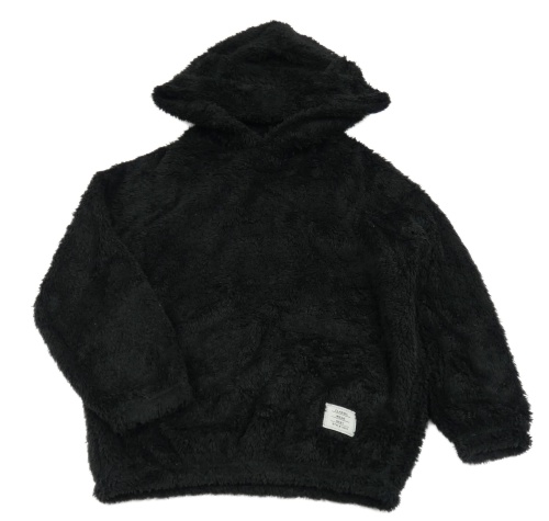 Čierna chlpatá mikina s nášivkou a kapucňou SHEIN