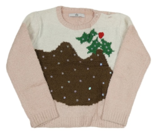 Ružovo-biely chlpatý sveter s pudinkem s flitrami M&S