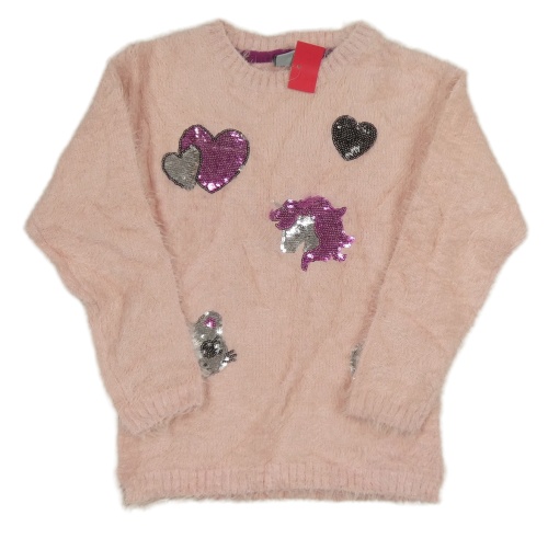 Nové - Ružový chlpatý sveter s obrázky z flitrů Kiki&Koko