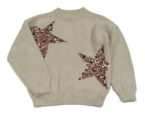 Béžový chlpatý sveter s hvězdami z flitrů F&F