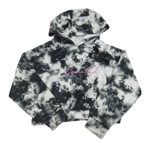 Čierno-sivo-biela batikovaná crop mikina s nápismi a kapucňou PEP&CO