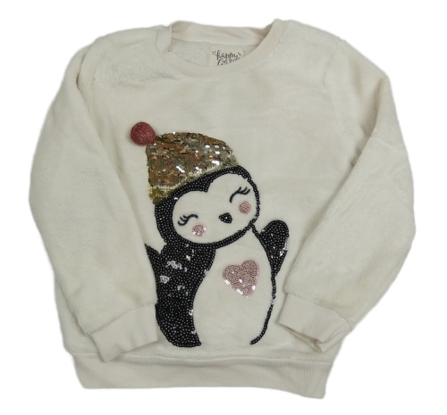 Smotanová plyšová mikina s tučňáčkem s flitrami C&A