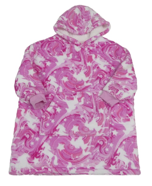 Ružovo-biela vzorovaná chlpatá zateplená oversize mikina s kapucňou Dunnes