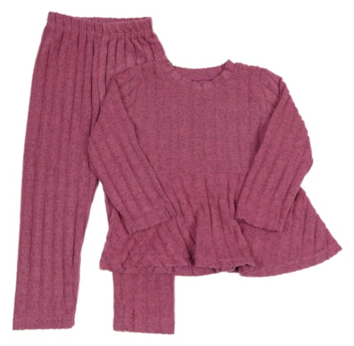 2set - Ružovo-sivá melírovaná rebrovaná svetrová tunika + nohavice