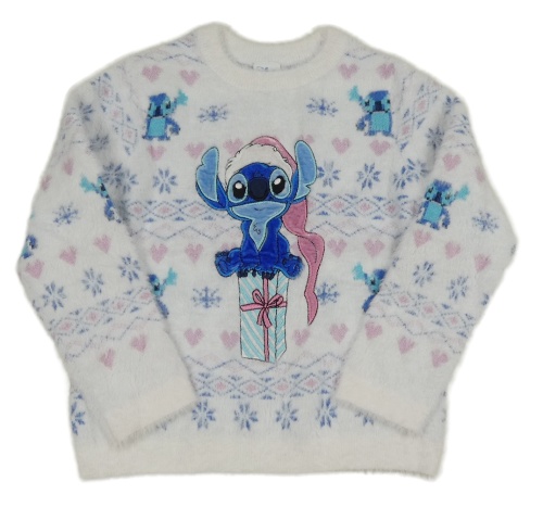 Biely vzorovaný chlpatý sveter so Stitchem Disney