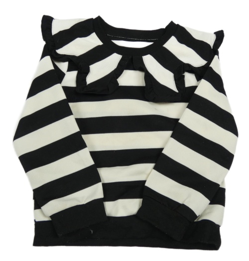 Čierno-biela pruhovaná mikina s golierom s volánikom