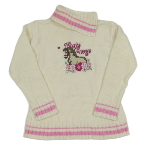 Smotanový sveter s růžovým lemem a koněm a rolákom C&A