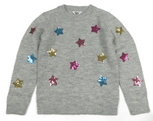 Sivý melírovaný sveter s hvězdami z flitrů M&Co.