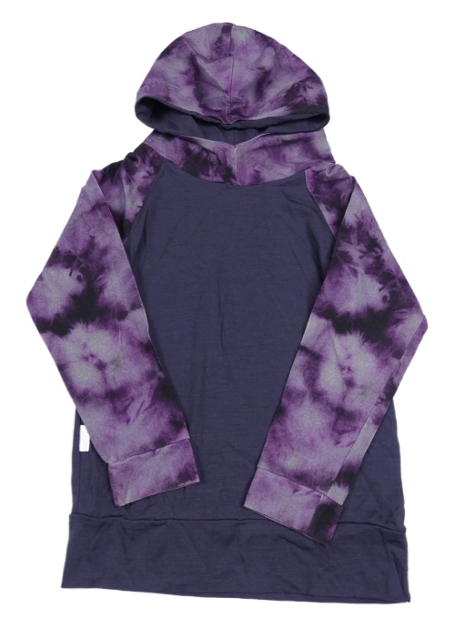 Lilkovo-purpurovo-fialová melírovaná vlnená mikina s batikovanymi rukávy a kapucňou