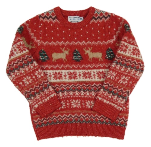 Červeno-smotanový melírovaný vzorovaný sveter s vánočními stromčekmi a sobmi PRIMARK