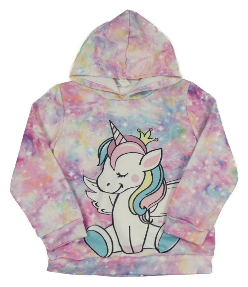 Farebná duhová batikovaná mikina s jednorožcom a kapucňou