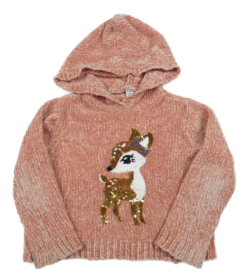 Ružový žinylkový sveter s laní z flitrů a kapucňou Dopodopo