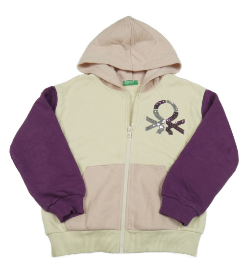 Smetanovo-purpurová prepínaci mikina s flitrami a kapucňou Benetton