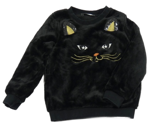 Čierna plyšová mikina s mačkou C&A