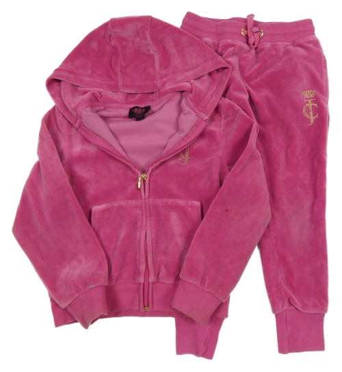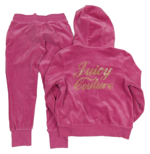 2set - Ružová plyšová prepínaci mikina s nápisem z kamínků a kapucí + ružové plyšové tepláky Juicy Couture