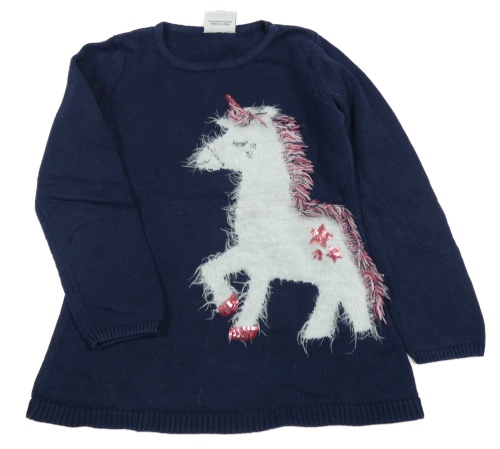 Tmavomodrý dlhý sveter s jednorožcom Topolino