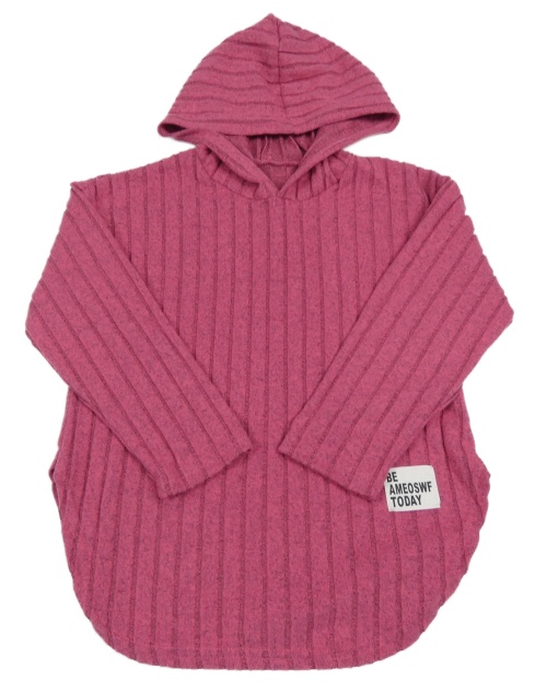 Ružovo-sivý melírovaný rebrovaný sveter s kapucňou