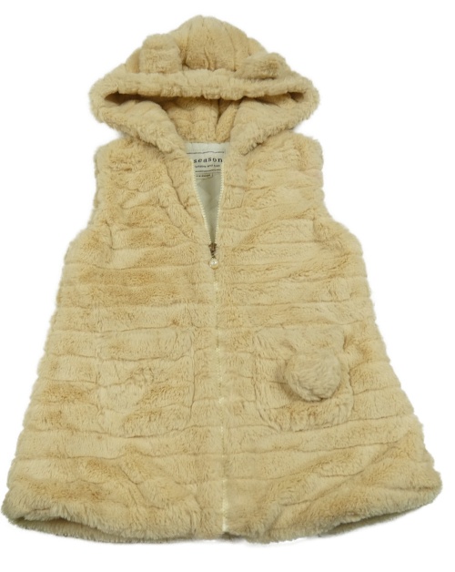 Béžová kožušinová zateplená vesta s kapucňou
