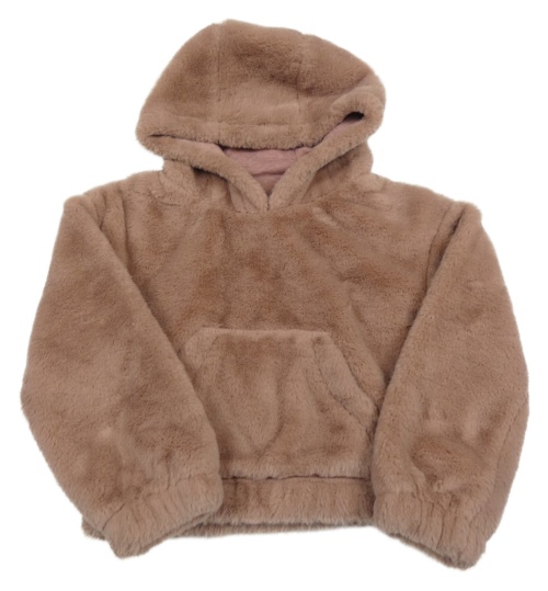 Staroružová kožušinová podšitá crop mikina s kapucňou Nutmeg