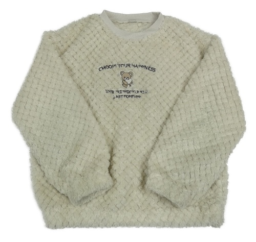 Béžová vzorovaná chlpatá mikina s medvěďom a nápisom