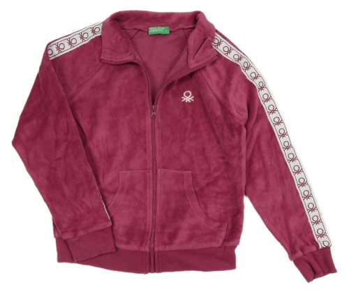 Tmavoružová zamatová prepínaci mikina s pruhmi Benetton