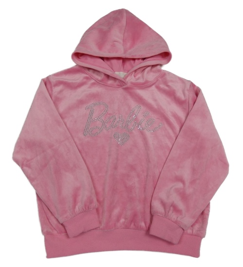 Ružová plyšová mikina s nápisem z kamínků a kapucí - Barbie H&M