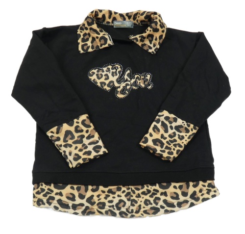 Čierno-vzorovaná mikina s nápisom a srdiečkom a kamienkami a golierikom