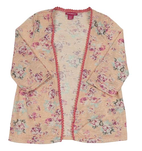 Broskvovo-ružový melírovaný úpletový cardigan s růžemi YD